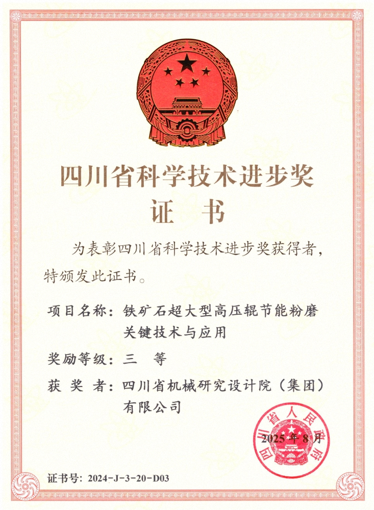 近日,2024年度四川省科學技術獎勵大會在成都舉行,川機集團參與的“電子裝聯(lián)關鍵精密件數(shù)智化制造技術及應用”項目和“鐵礦石超大型高壓輥節(jié)能粉磨關鍵技術與應用”項...